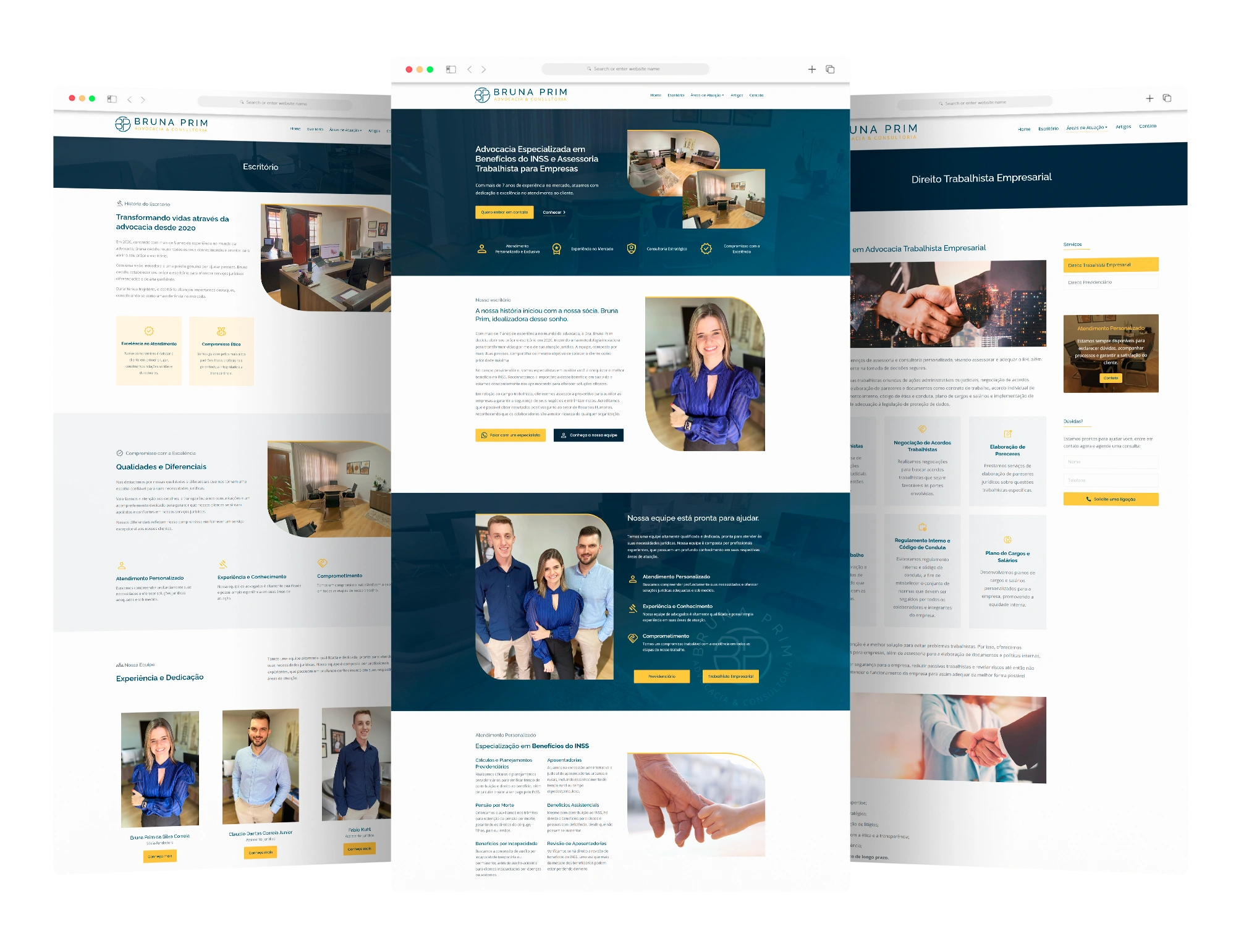 Quando Bruna Prim nos procurou, ela buscava mais do que um site. Ela queria uma presença digital que representasse sua trajetória, sua credibilidade e sua maneira única de fazer advocacia.